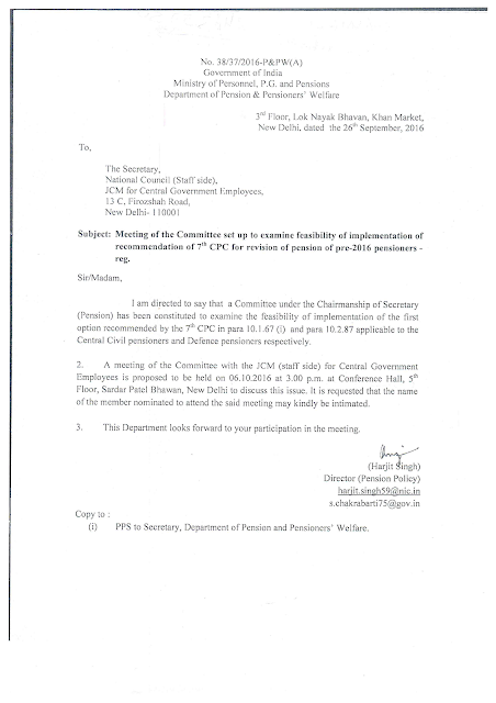 recommendations of 7th CPC for revision of pension of pre-2016